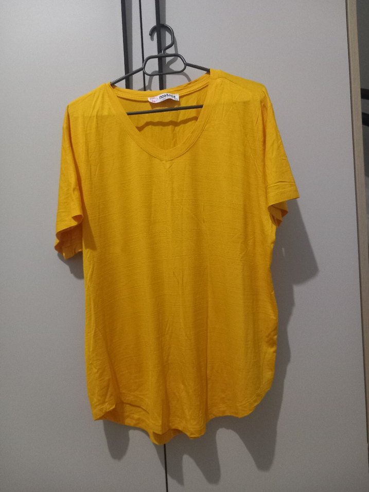 Kadın tişörtü, bol kesim, kısa kollu ve V yaka. Yumuşak keten kumaştan, hardal renkte, sade ve desensiz tasarım. Normal boyda, minimalist ve günlük sokak stili için uygundur Not: Dolap temizliği nedeniyle uygun fiyata bırakıyorum ✅ Kargo: Hızlı gönderim yapılır
