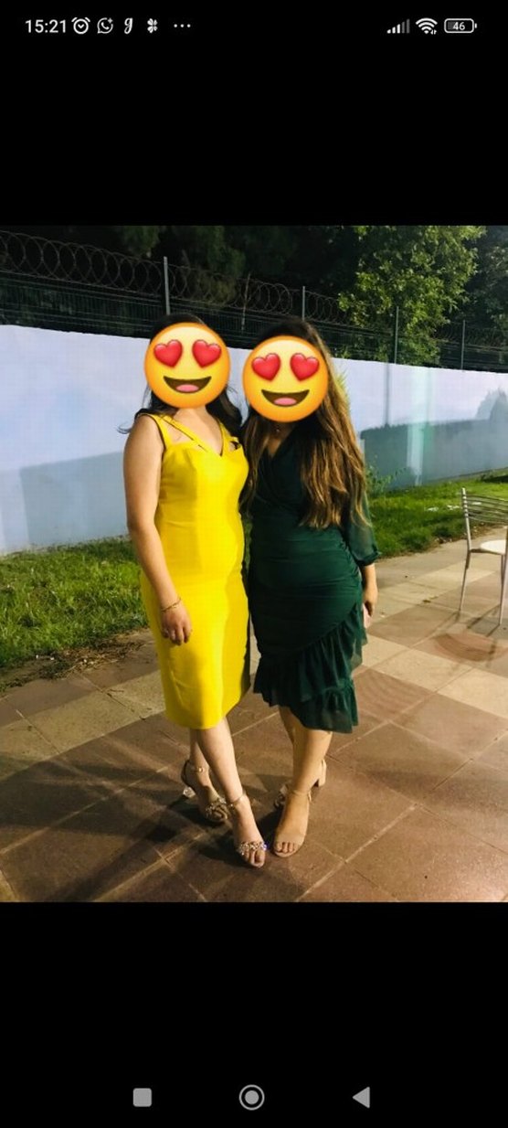 Parlak sentetik kumaştan, bağcıklı kollu, V yakalı, sarı ve batik desenli, kalem kesim midi uzunlukta elbise. Parti için cesur tarz. ✨