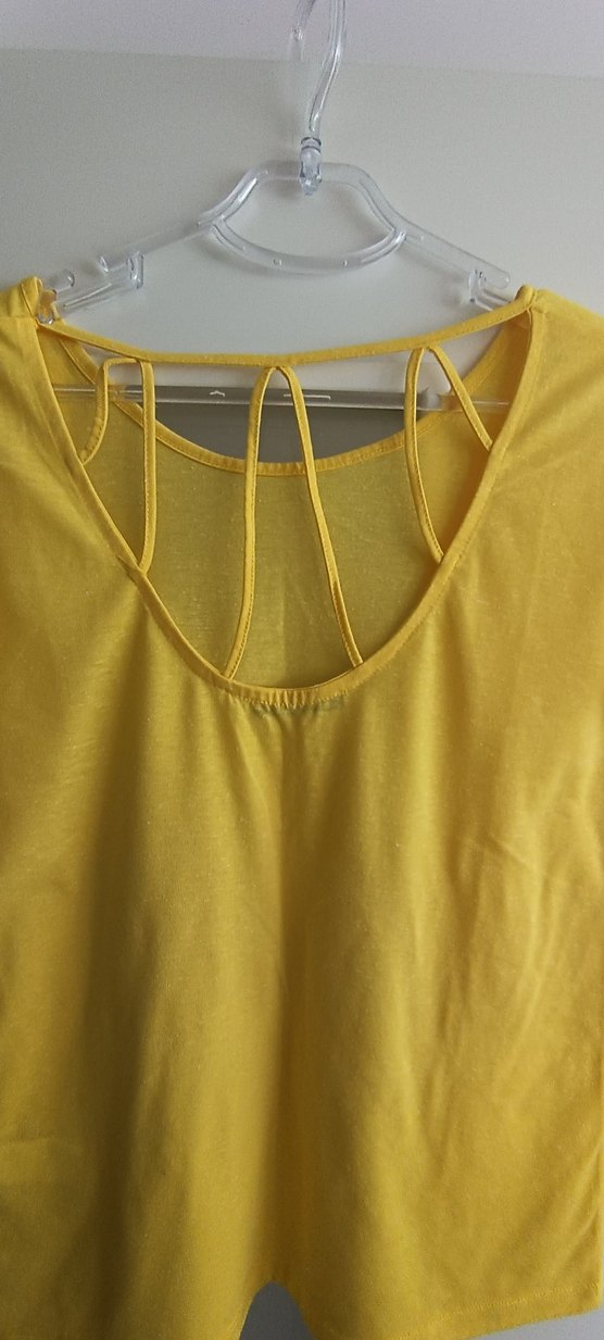 Sarı V Yakalı arkası İnce Askılı Kadın tisort