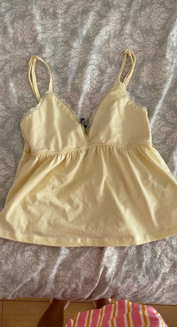 Sarı V Yakalı Dantelli Kadın crop