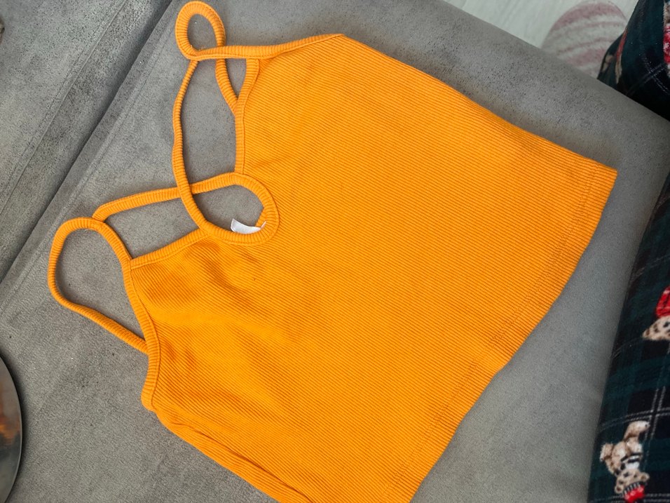 Sarı renkli, V yakalı ve örgü dokulu bu atlet, vücuda oturan kesimi ve kolsuz tasarımıyla günlük sokak stiline uygundur. Yumuşak sentetik kumaştan, normal midi boydadır.