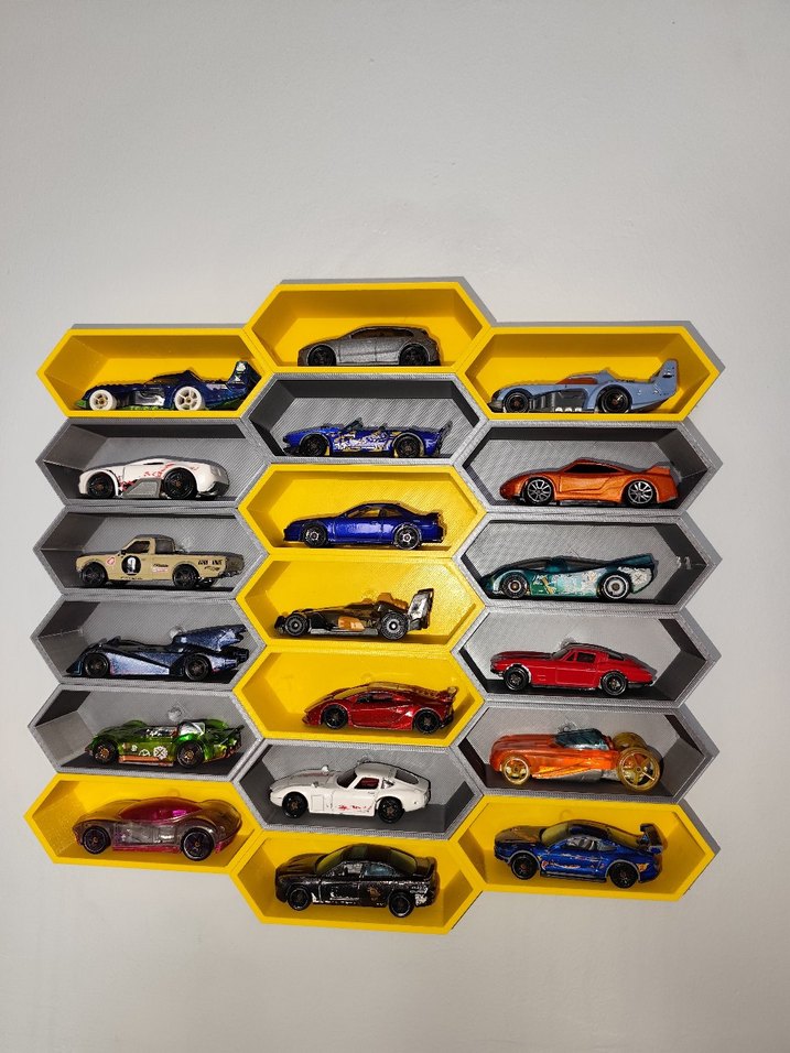 Sarı ve gri altıgen raf üzerinde farklı renk ve tasarımlarda bulunuyor. Koleksiyon için uygun. Sağlam ve iç içe geçmelidir 3 d baskıdır . İstenilen adet ve renkte yapılmaktadır .