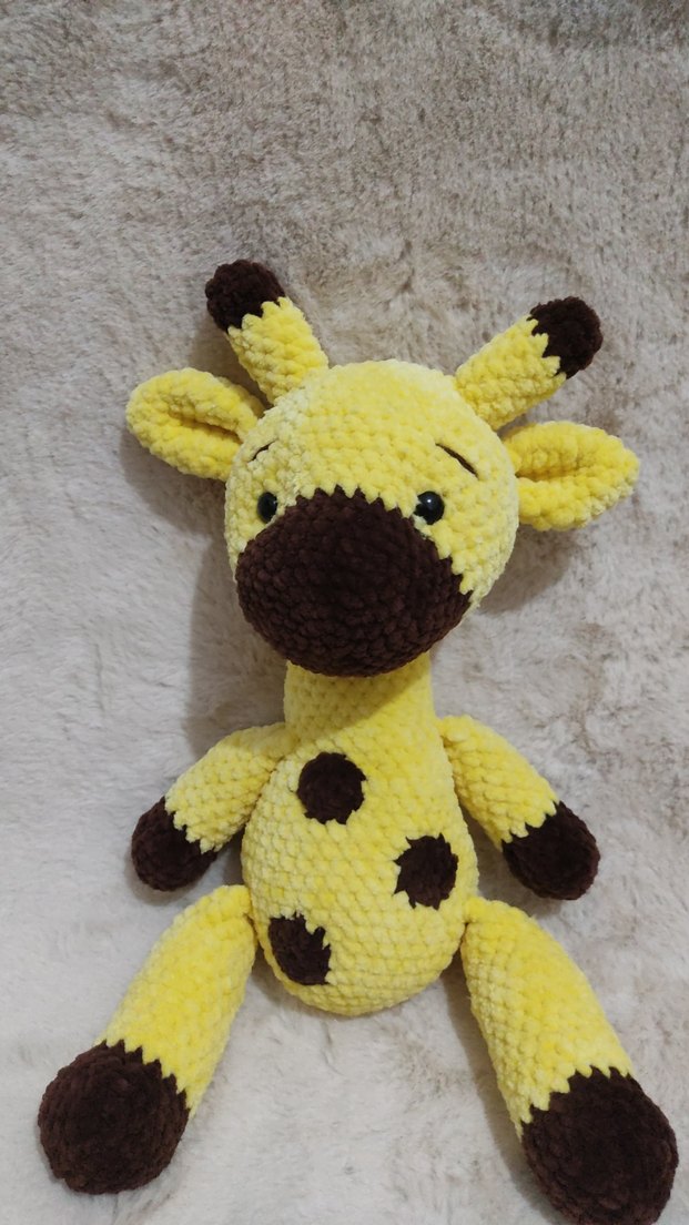 Yumuşak sarı ve kahverengi peluş zürafa oyuncak, renkli lekeleriyle sarılmak için ideal. boyu 45 cm