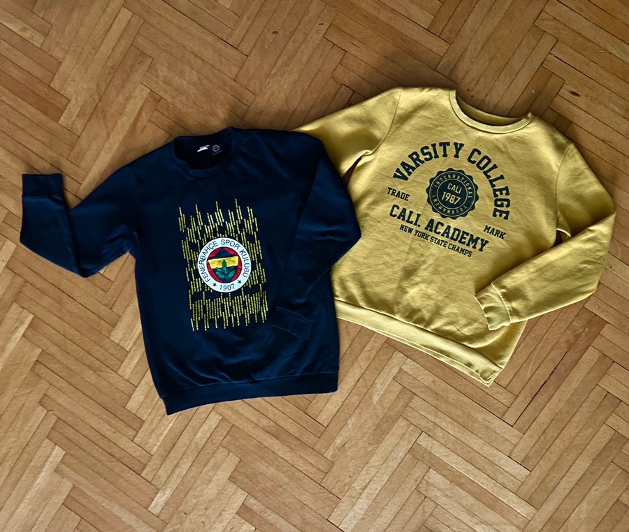Sarı renkli, uzun kollu ve yuvarlak yakalı erkek sweatshirtü. Rahat kesimli ve yumuşak, sıcak tutan kumaştan üretilmiştir. LCW ve DEFACTO ürünleri bir 12/12 yaş diğeri 10/11 yaş (bol kalıp)