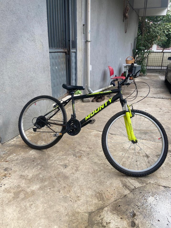 Sarı ve siyah renklerde dağ bisikleti, sağlam lastikler ve rahat seleye sahiptir. Farklı zeminlerde kullanıma uygundur. ♂️