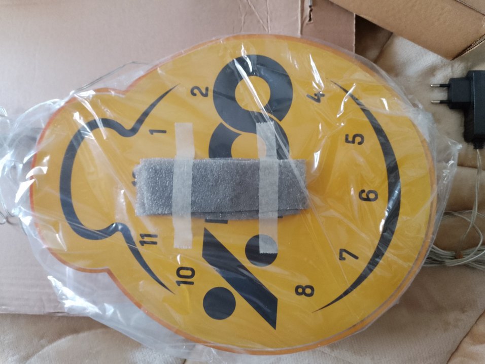 Sarı zemin üzerinde siyah rakamlarla tasarlanmış duvar saati.