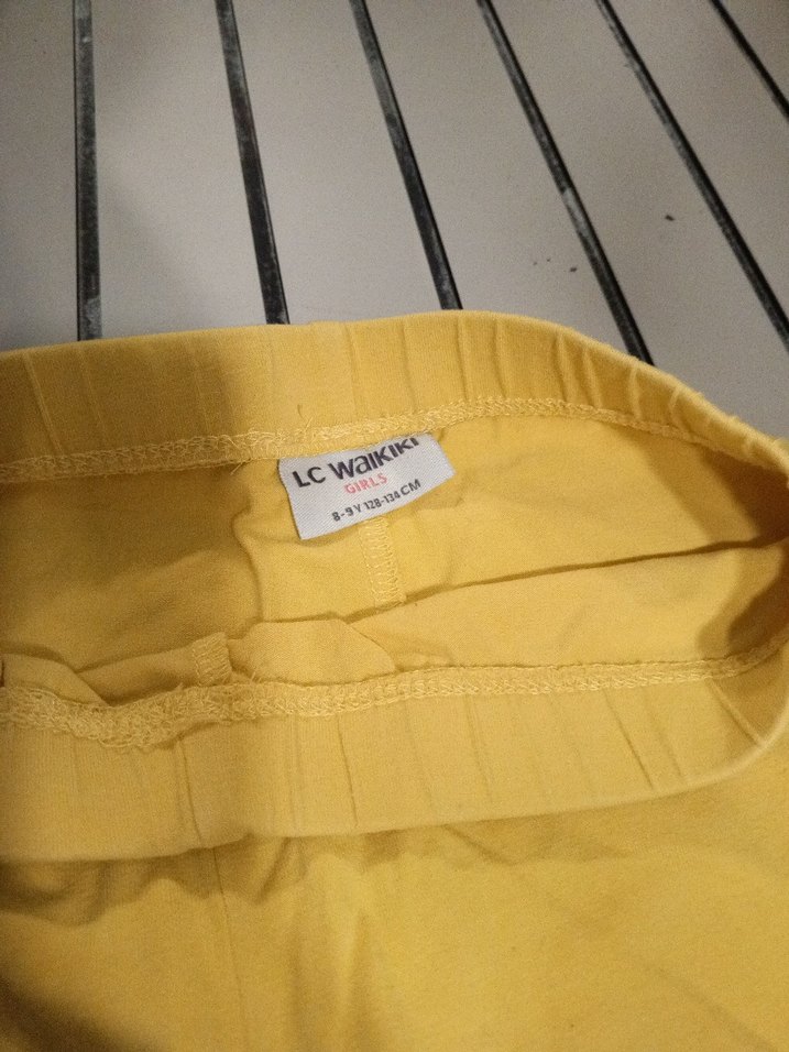 Sarı renkte, velcro bantlı, yumuşak sentetik kumaştan yapılmış, günlük kullanım için uygun, sade tarzda hamile pantolonu.