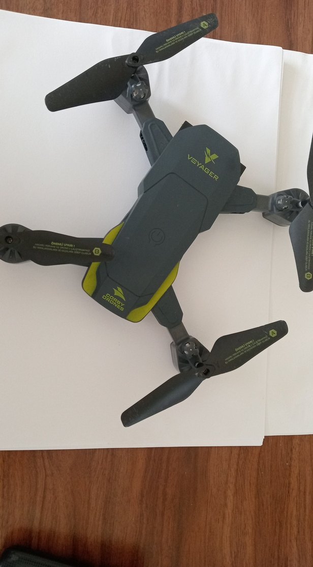 Katlanabilir kollara sahip koyu sarı Voyager drone, hava çekimleri için uygun aksiyon kamerası özellikleriyle donatılmıştır. ancak kumandası yoktur sadece drone olarak satıştadır
