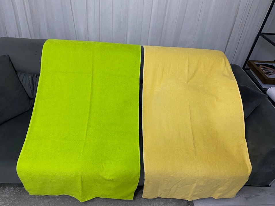 Yeşil sarı renkte, yumuşak ve emici özellikte, sade ve modern tasarıma sahip havlu. Yurtdışı ihracat marka temsilidir