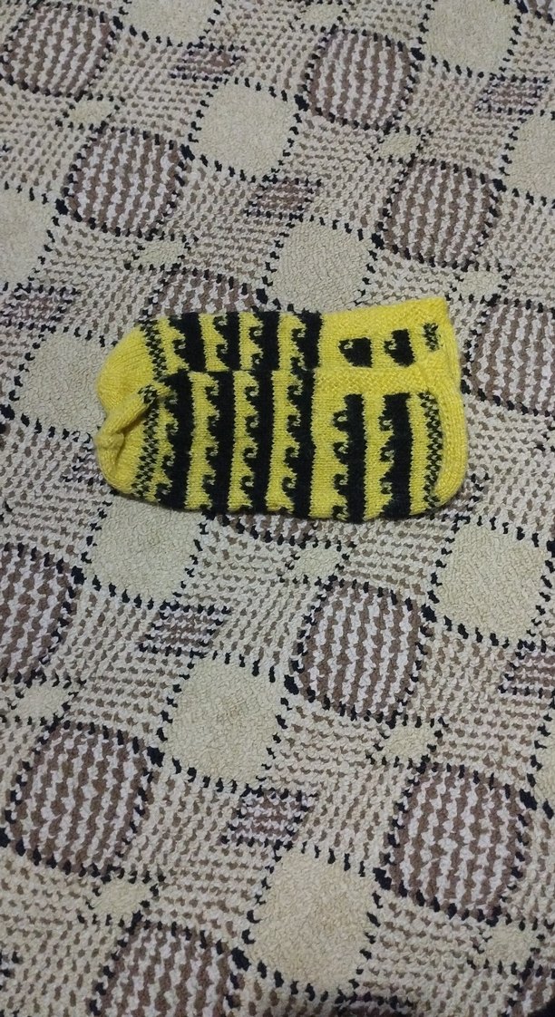 Sarı renkte, yılan deseniyle renkli erkek çorabı.