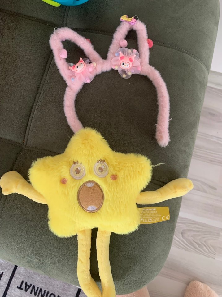 Nakışlı detaylara sahip pastel sarı yıldız şekilli, cırt cırtlı çocuk saç bandı. Yumuşak ve renkli, rock punk tarzında.