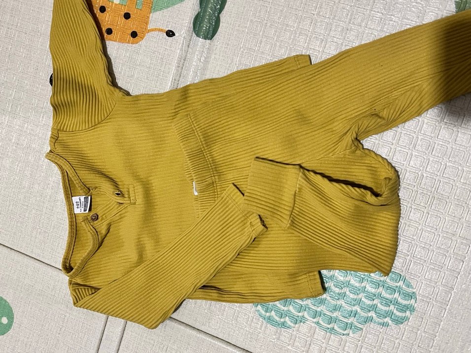 Ürün pamuk likralı rahat esnek kumaş 9 aylıkken giydik sarı ile yağ yeşil arası bir ton