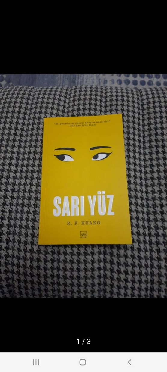 R. F. Kuang'ın Sarı Yüz adlı romanı, sarı kapak üzerinde minimalist göz çizimleriyle dikkat çekiyor.