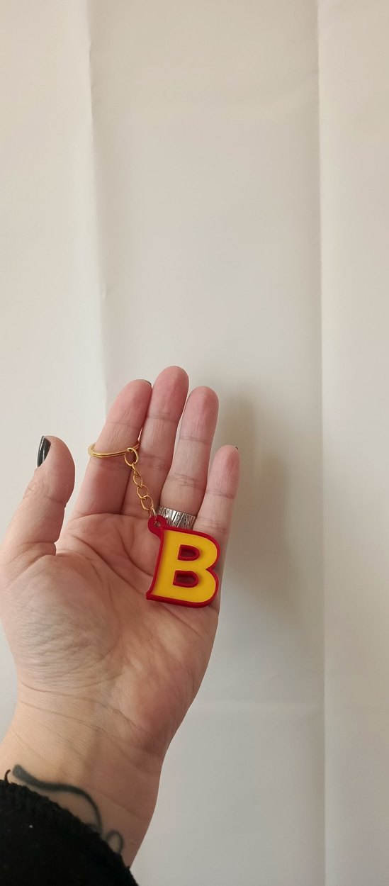 Sarı Zincir Detaylı 'B' Harfi Anahtarlık