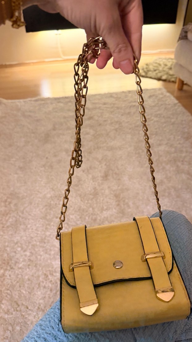 Sarı Zincir Detaylı Deri Kadın Çanta