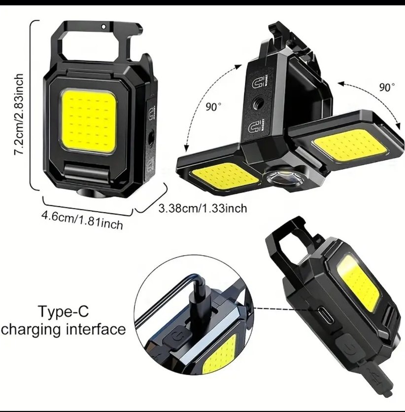 Kampta, aracınızda, gece sürüşü, ve diğer tüm senaryolar için kullanılabilir. Anahtarlığınıza takarak taşıyabileceğiniz bu ürün 5 farklı modda, 1100 mAh pil gücüyle, Type-c jarj, su geçirmez, 90 ° katlanabilen, şişe açabileceğiniz ve manyetik tabana sahiptir.
