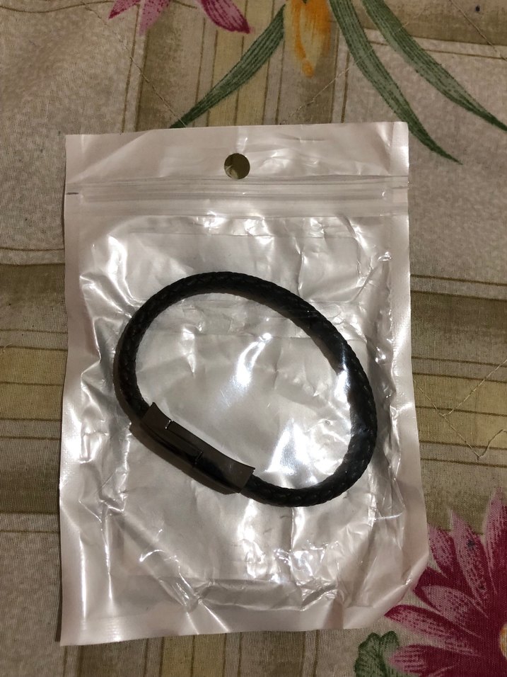 Ürün sıfırdır. Siyah, örgü tasarımlı, suni deri, güvenli klipsli minimalist biker tarzı şarj kablosu bileklik. Type c telefonlar için uygundur.