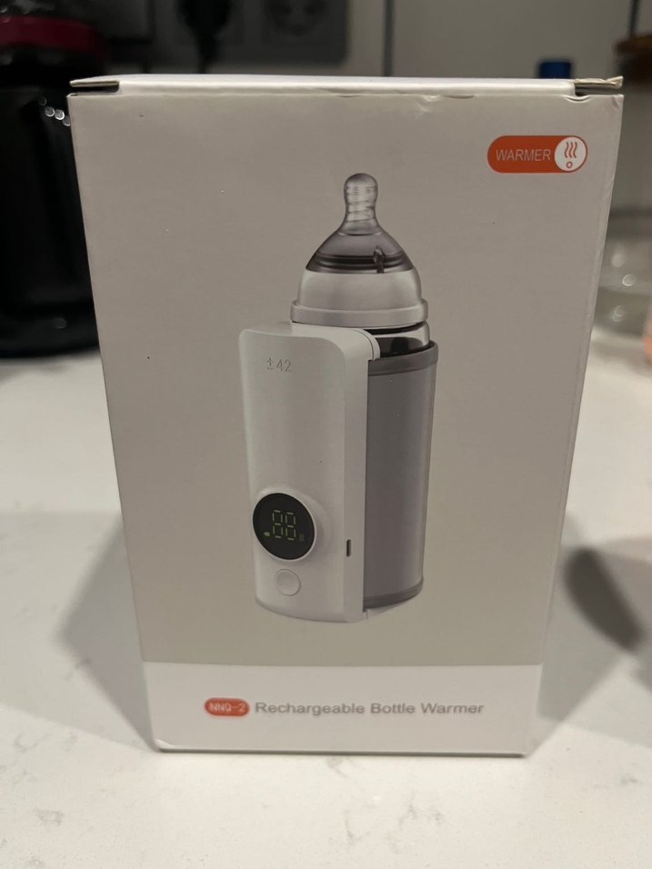 Gri ve beyaz renkli, dijital ekranlı şarjlı bebek biberon ısıtıcısıdır. Biberonları hızlı ve güvenli şekilde ısıtır.
