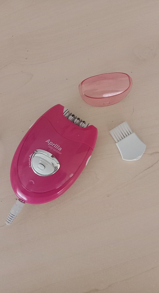 Aprilla marka pembe epilatör, koruyucu kapak ve temizleme fırçası ile birlikte gelir. Kolay kullanım ve bakım sağlar.✨ Herhangi bir sorunu yoktur. Kullanımı pratiktir.Koblosuz şarjlı istediğiniz yerde kullanabilirsiniz. Şarjı uzun süreli.
