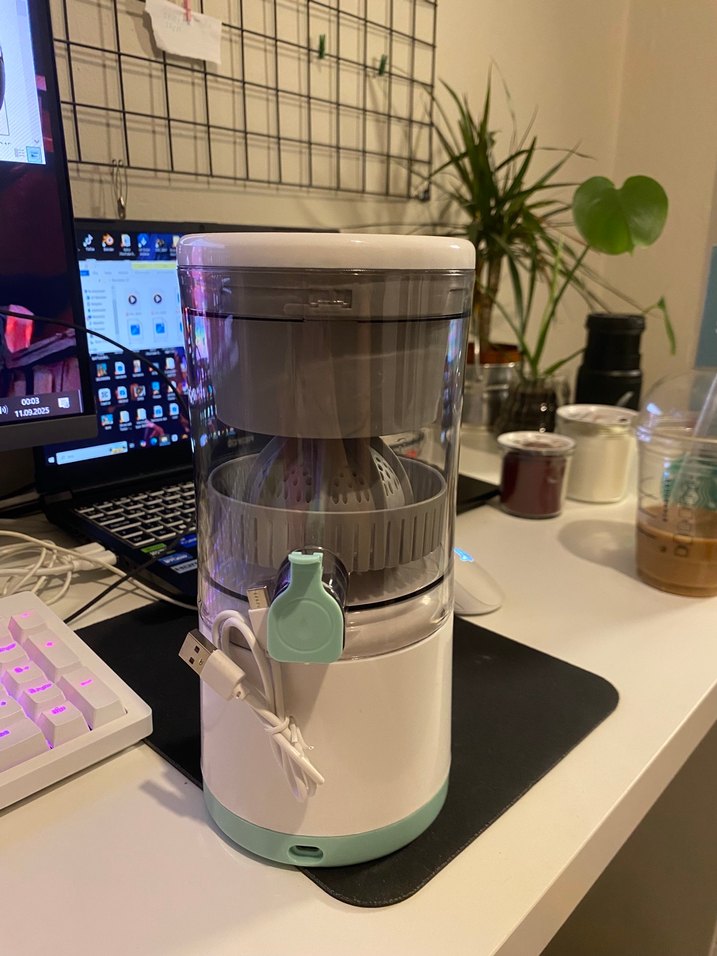 Şarjlı meyve sıkacağı minik yer kaplamaz fişe takmadan çalışabilir kolay temizlenir hiç kullanılmadı paketli ürün