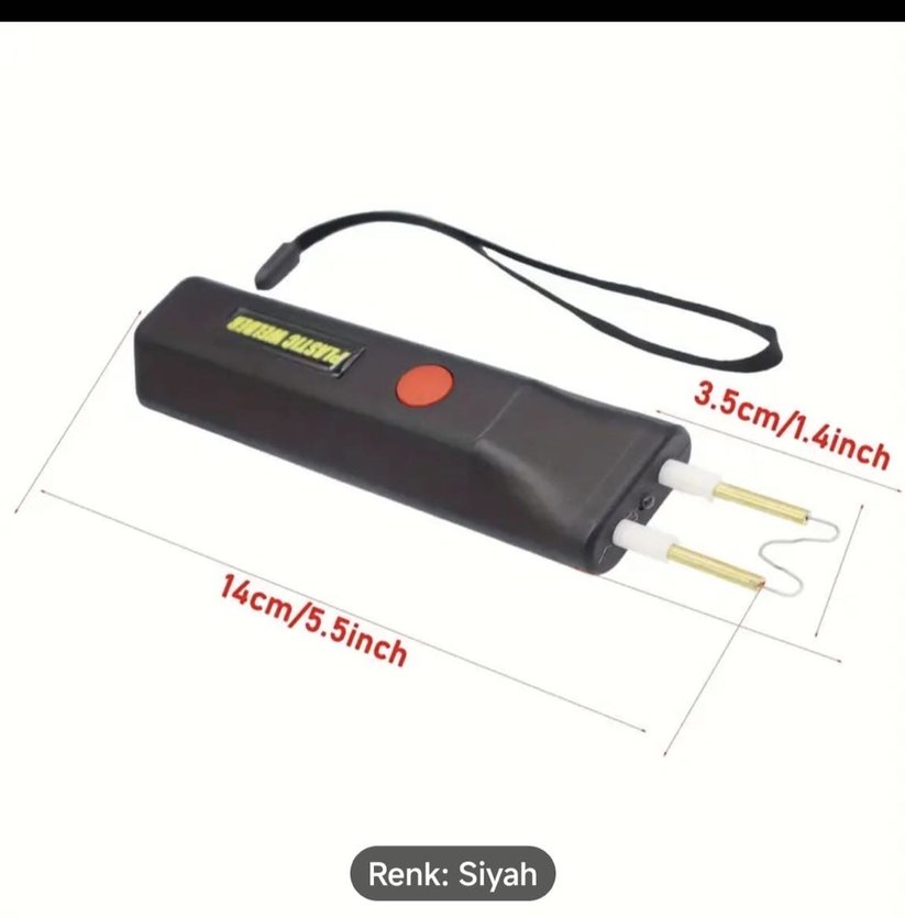 14cm uzunluğunda, 3.5cm genişliğinde siyah taşınabilir şarjlı plastik kaynak makinesi , kullanımı kolay bileklik kayışı ile birlikte.
