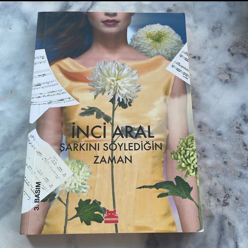 Sadece bir kere okundu. Aral'ın 'Şarkını Söylediğin Zaman' romanı, sarı elbiseli bir kadın ve etrafında çiçekler ile nota yaprakları bulunan kapağa sahip.