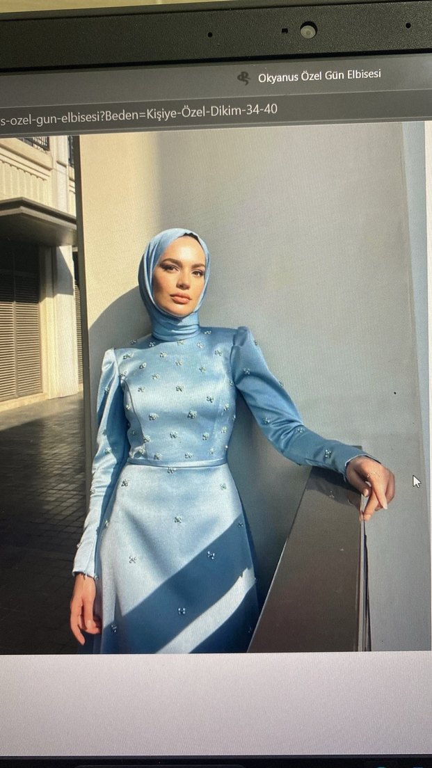 Parlak mavi renkte, uzun kollu ve yüksek yakalı zarif nakışlı elbise. Düzenli kesim ve drapeli tasarımıyla günlük kullanıma uygundur. ✨orjinal 40 beden