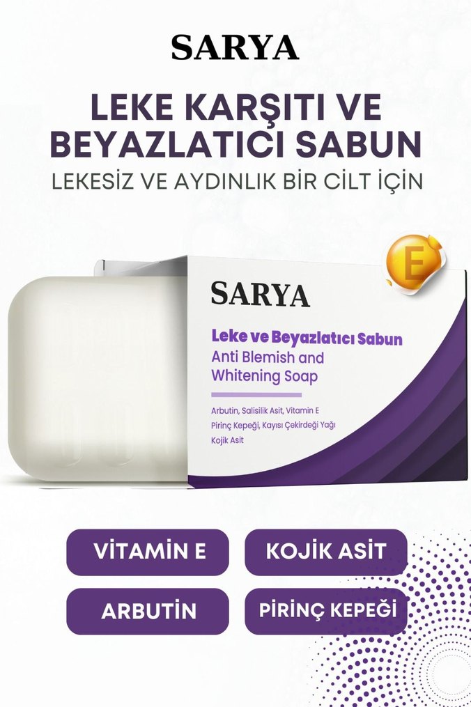 Sarya sabun, vitamin E, kojik asit, arbutin ve pirinç kepeği içerir. Leke karşıtı ve cildi aydınlatıcı etkisi vardır.