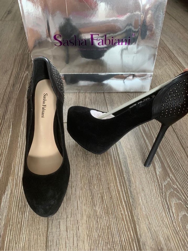 Sasha Fabiani tasarımı, detaylı ve desenli siyah stiletto topuklu kadın ayakkabı. şık ayakkabı akşamlar için ideal.