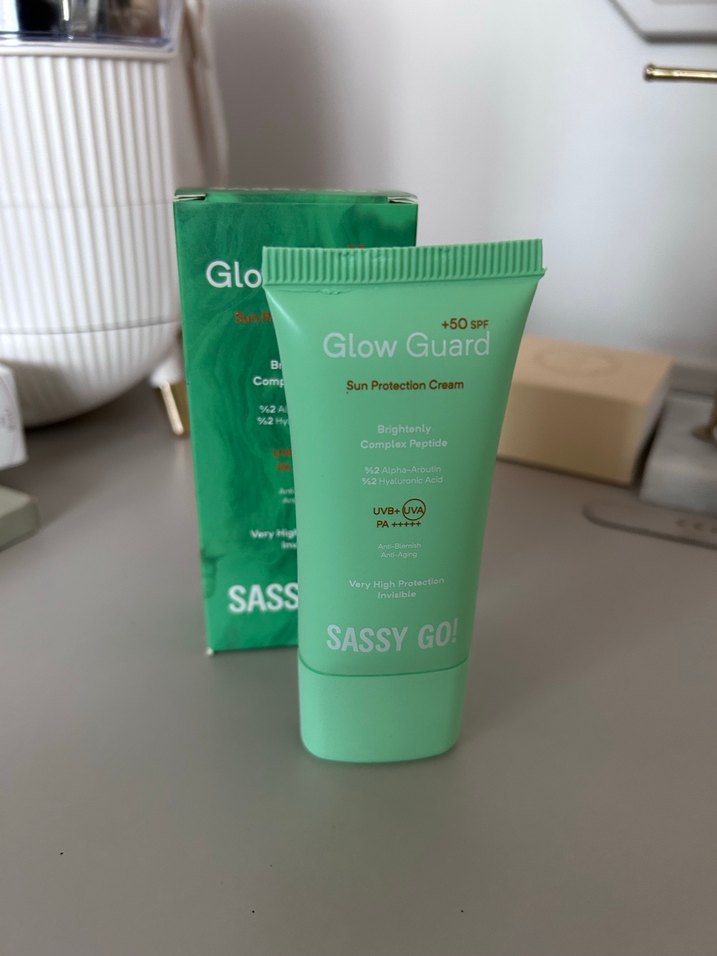 Sassy Go Glow Guard, SPF 50 güneş koruyucu kremdir. Aydınlatıcı kompleks peptid ve UVA/UVB filtreleri içerir. Çok yüksek koruma sağlar.