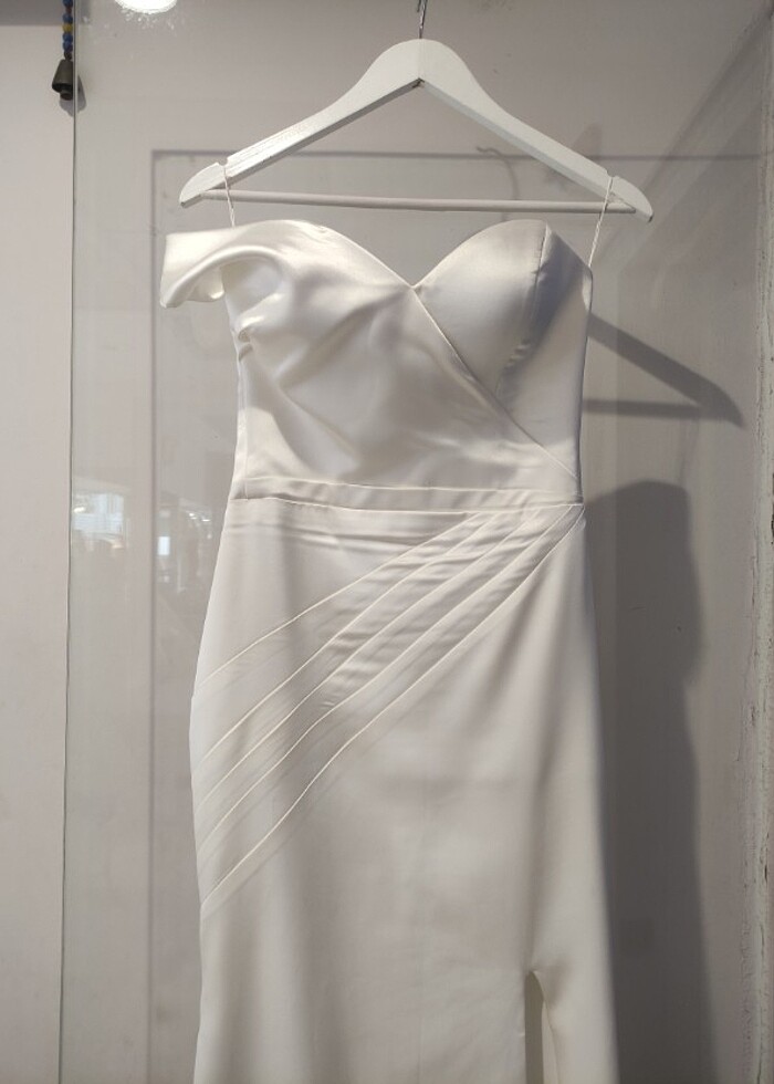 34 beden sırtı fermuarlı kuyruklu demonte etekli ekru renk temiz