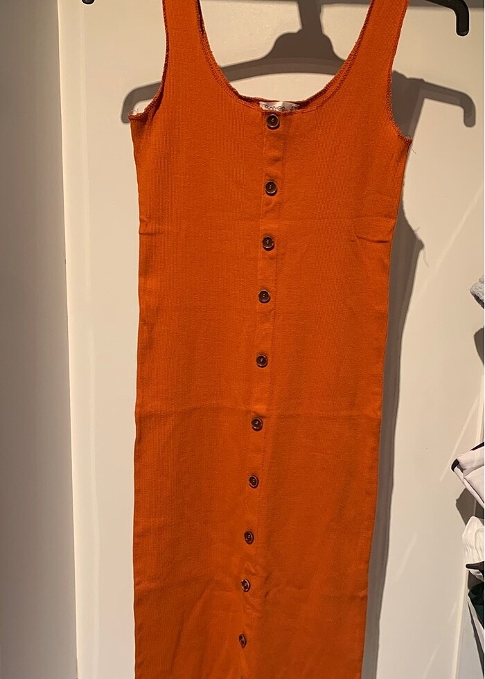 Sateen marka S beden tarçın rengi düğmeli elbise. Kumaşı falan çok güzel. Boyu 107 cm. Kilo aldığım için giyemiyorum. Yeni gibi tertemizdir. Hiçbir kusuru yoktur. #elbise #tarçınelbise #sateen #sateenelbise #sateenmarkaelbise #sateen