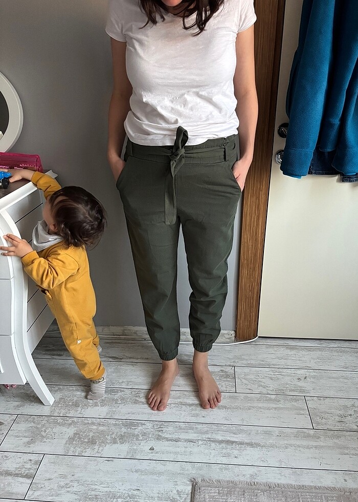 Haki yeşil jogger bağcıklı pantolon. Çok rahat bir ürün. Yeni gibi bir kere filan giyilmiştir.