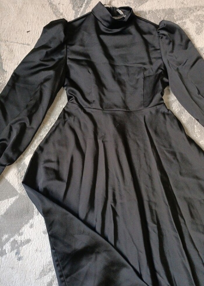 Sadece bir kere giyildi saten a kesim elbise 40 beden ütüsüz olduğundan dolayı resimdekinden çok çok daha iyi sorunsuz zaten siyah her dolapta olması gereken elbise abiye