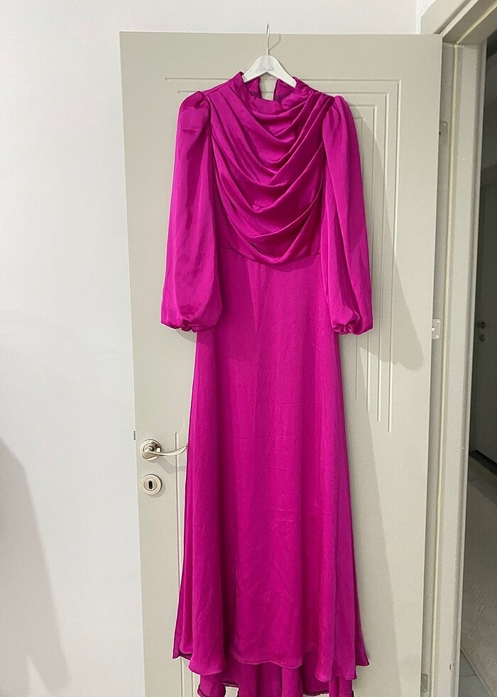 Ürün sadece bir kez kullanıldı. 55 kilodayken giydim.168 cm boyundayım 10 cm topuklu ile giydim ama yinede etekleri çok uzun. İsteğe göre kestirilebilir ya da daha uzun boydakiler de tercih edebilir. Saten döküm döküm duran ve çok rahat hissettiğim bir abiye.