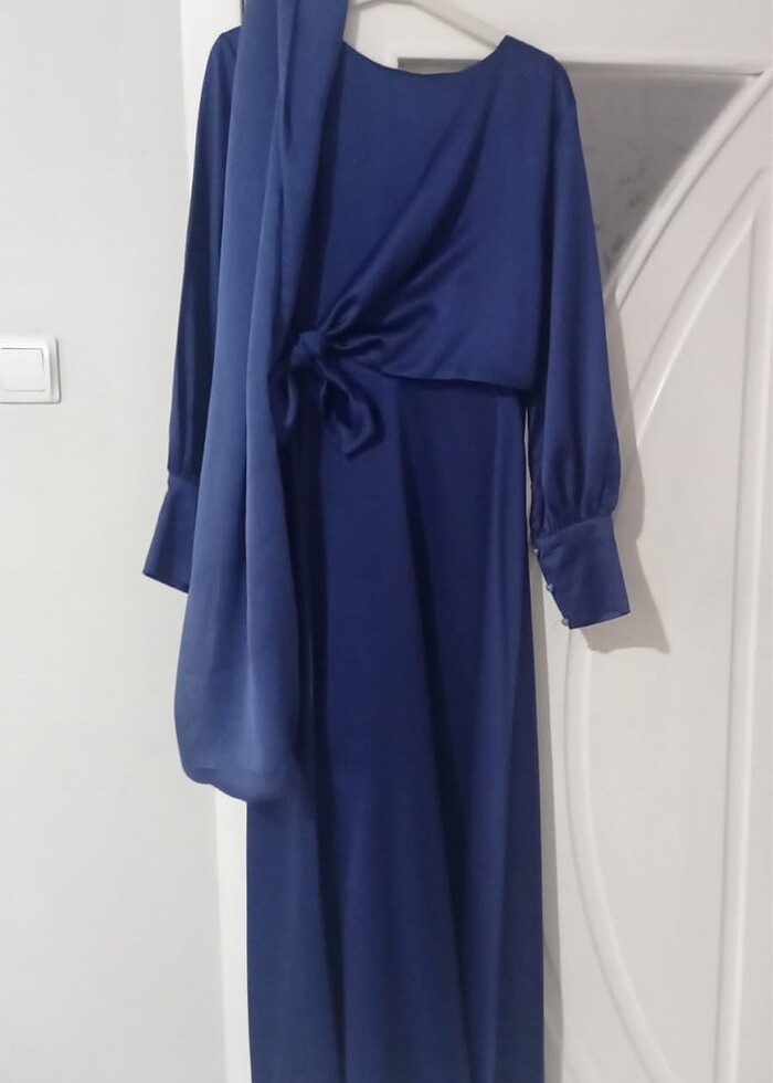 Bilekten lacivert saten abiye Hasarsız 40 beden Temiz kullanıldı 1 defa giyildi