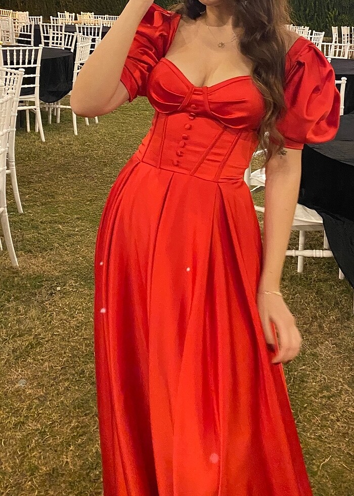 Abimin dugununu için almıştım parlak kırmızı saten üst korse kısmı arkadan ayarlanabilir bağlamalı bir daha giyemeyeceğim için satıyorum kumaşı çok kaliteli alacak olana şimdiden hayırlı olsun❤️
