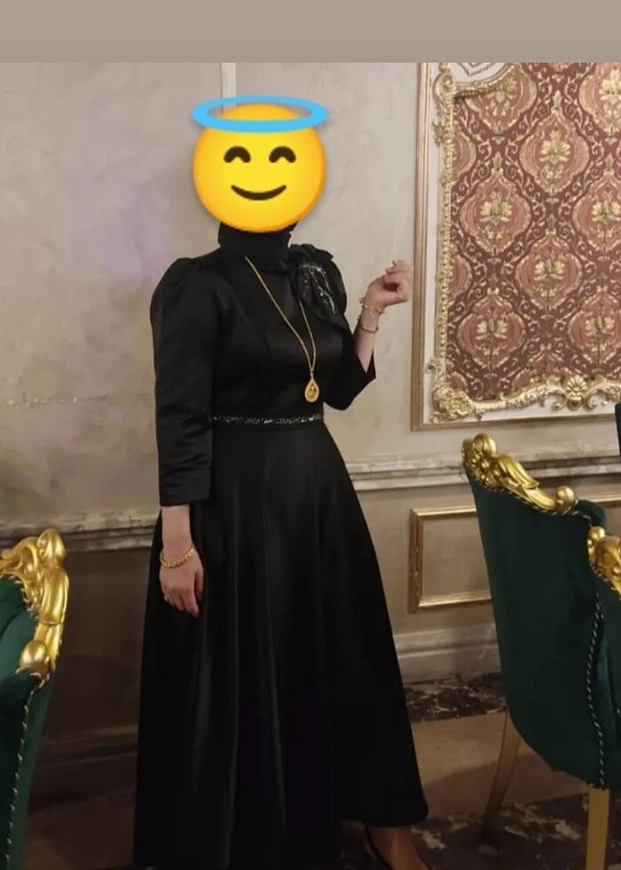 Elbise çok iyi durumda hiçbir sorunu yok İki kez düğünde giydim sadece siyah saten abiye düğünlerde giyilir 44 beden 42 bedene de uyumlu