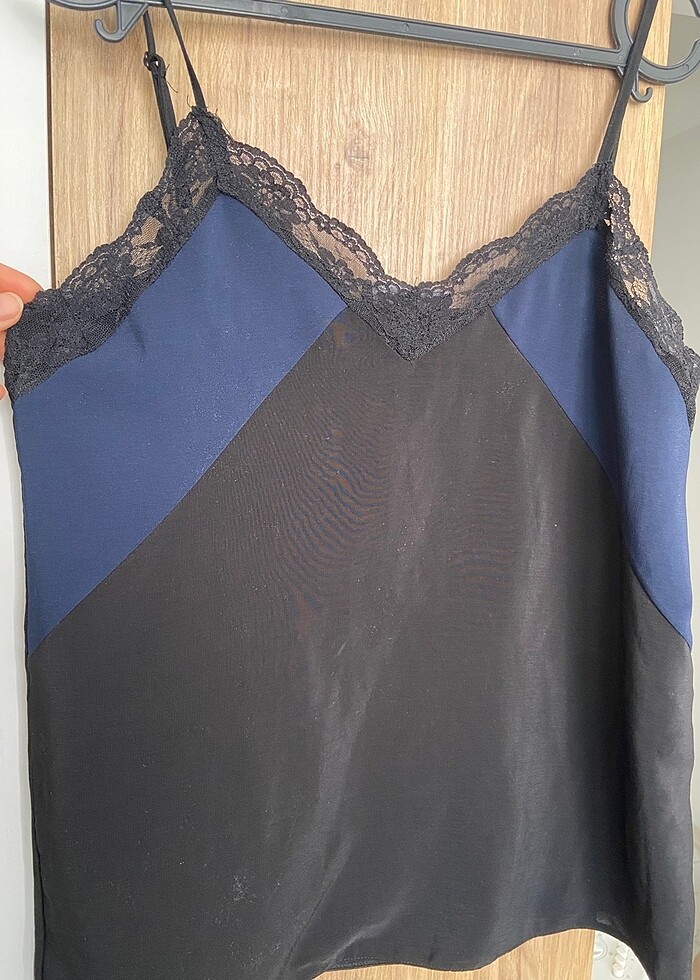 Saten askılı dantelli şık üst