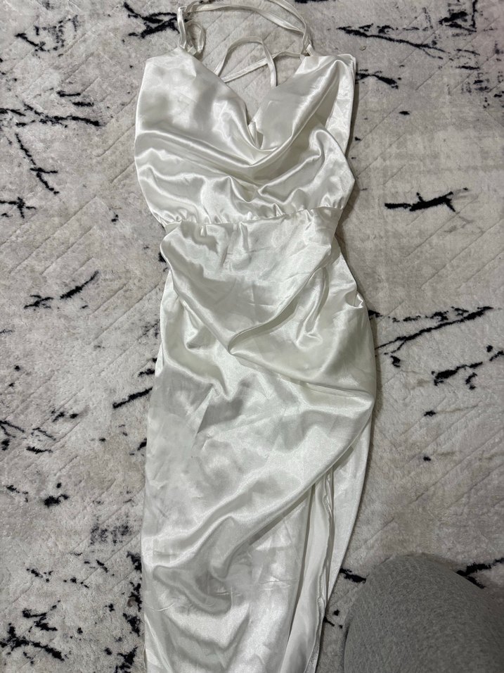 Saten bel dekolteli elbise