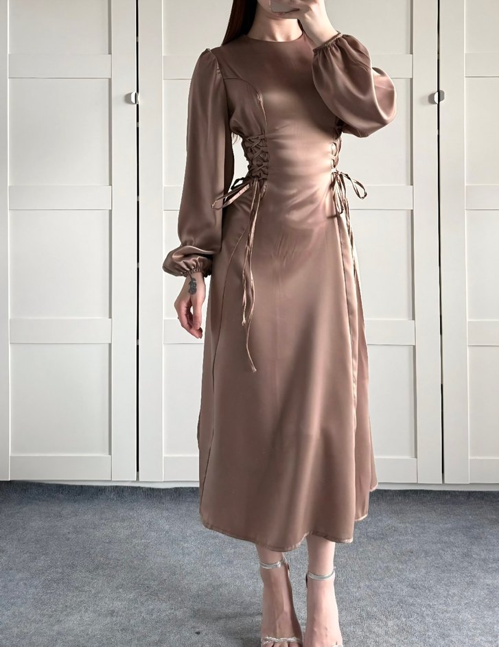 Saten bel korseli elbise