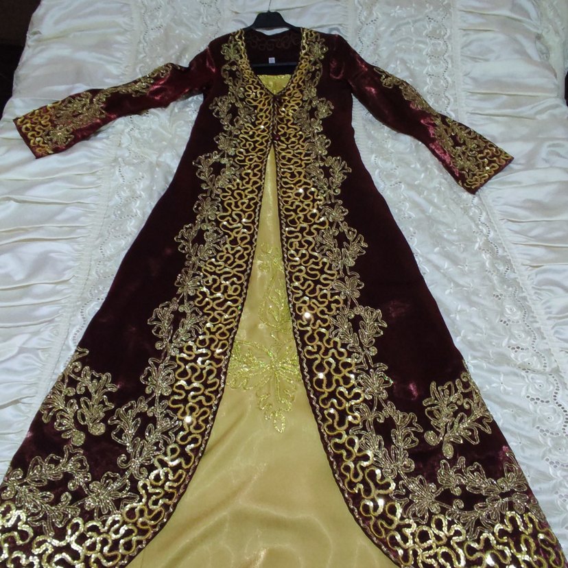 iki kol arası 42cm olup astarlı saten üzerine dore sırma işlemedir. hiçbir sorunu yoktur. tok duruşu vardır