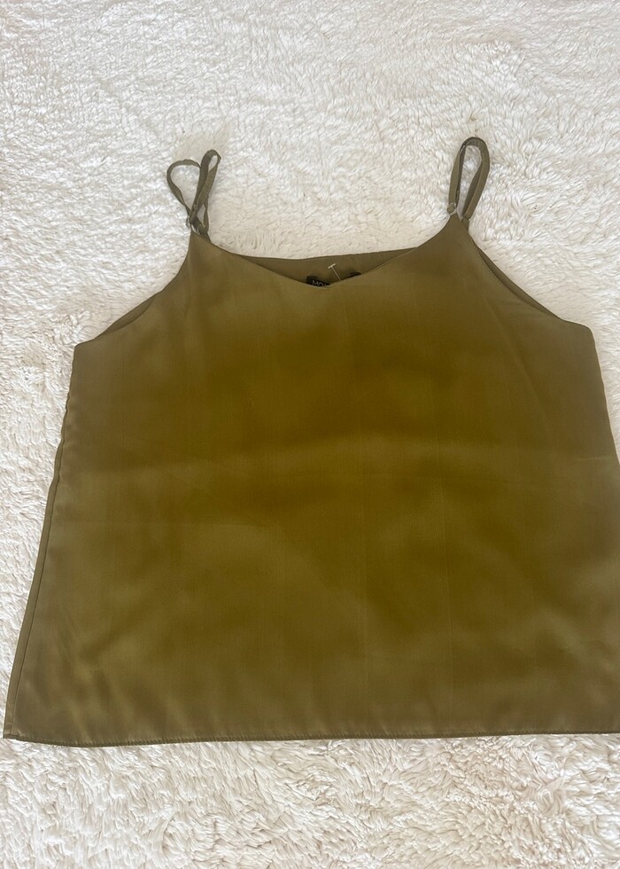 Haki renk Saten bluz kolduk altı 50 cm.genişlik alt genişlik 54 cm. Askılı etiketli örün..şık gece