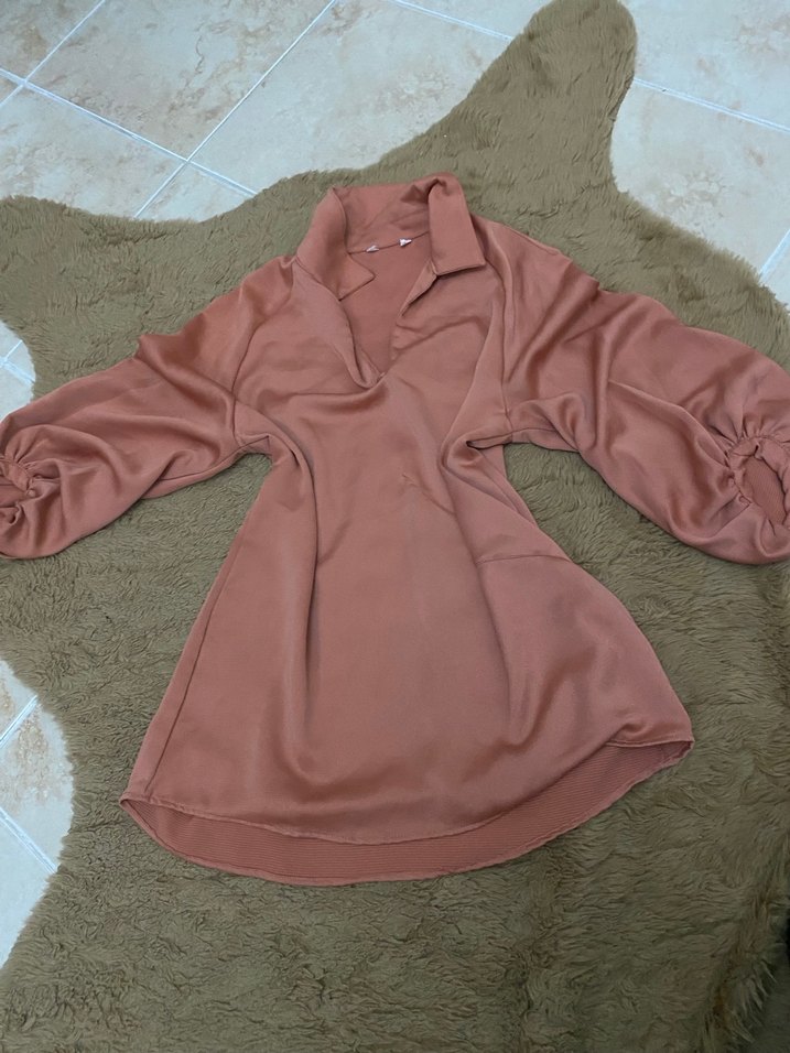 Kadınlar için uzun kollu, salaş kesim bej renkte, yumuşak ve rahat kumaştan yapılmış, desensiz ve çağdaş tarzda uzun elbise. ☁️