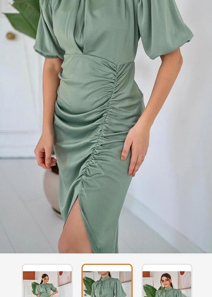 Saten büzgülü yırtmaçlı elbise