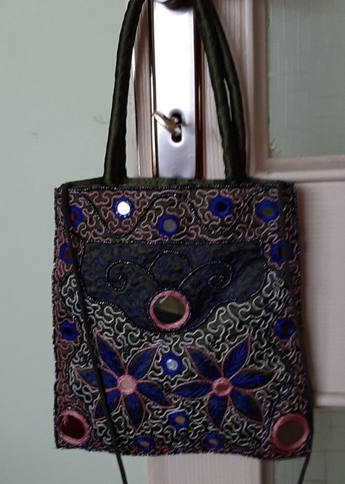 Saten hint işi aynali çanta