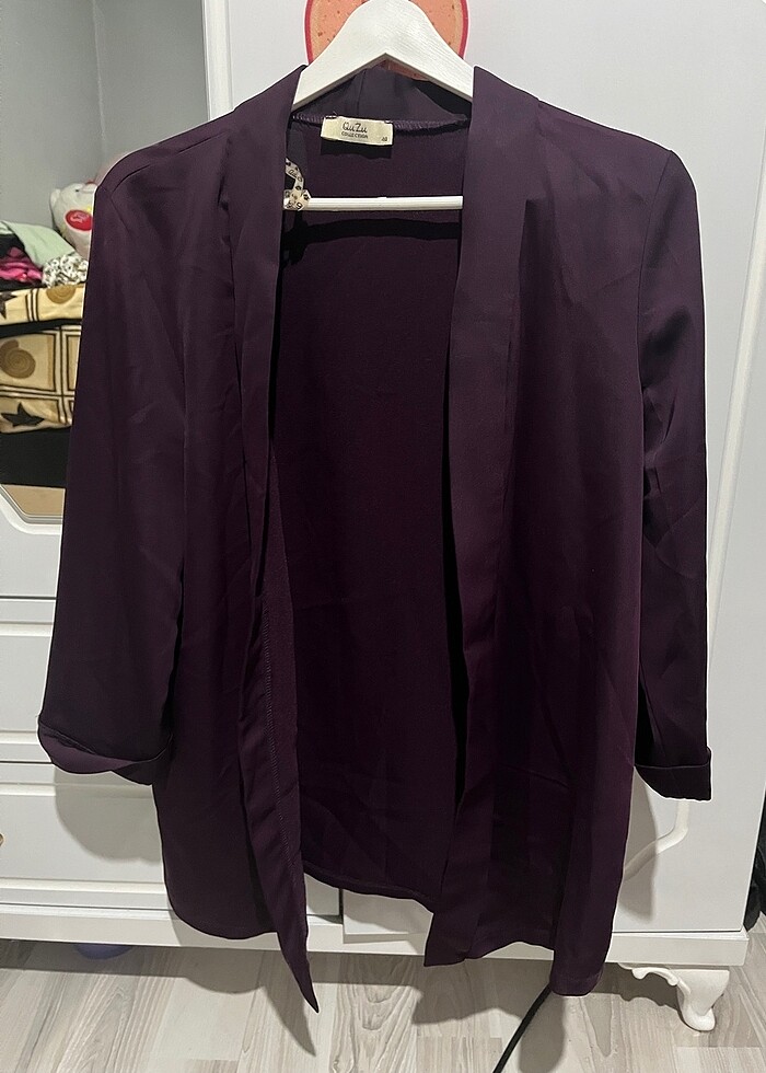 Hiç bir kusuru yok bir kez giyildi 40 beden olmasına rağmen 36-38 bedene çok rahat uyum sağlıyor mürdüm renk