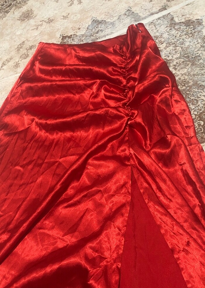 Saten drapeli yırtmaçlı etek