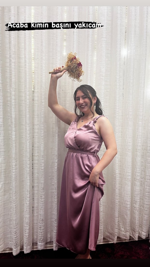 Saten elbise uzun rahat bir elbise M beden düğünde giyebilirsiniz