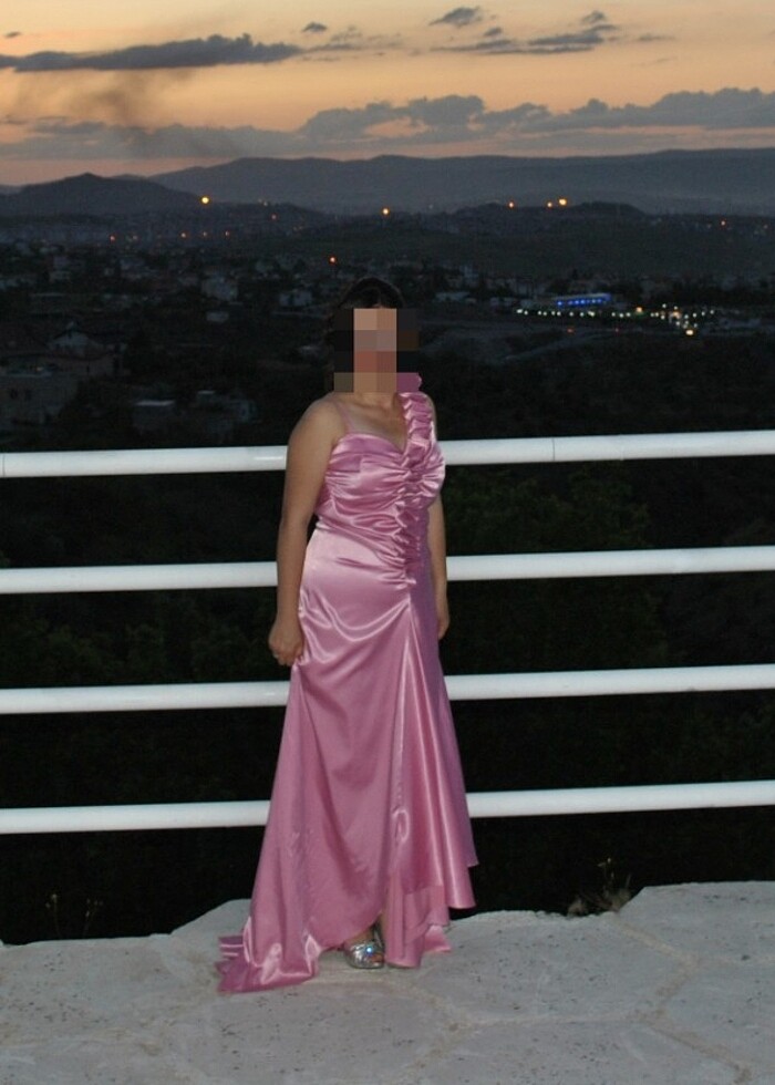 Saten kumaş, çok tatlı uçuk pembe bir rengi var. Omuz ve etek boyunda fır fır detayı vardır. Abiye elbiseler satan bir mağazadan alınmıştır. Sadece bir kere giyilmiştir. Hiçbir yerinde hasar yoktur. İsteğe bağlı ¡$t içi elden teslim edilebilir.